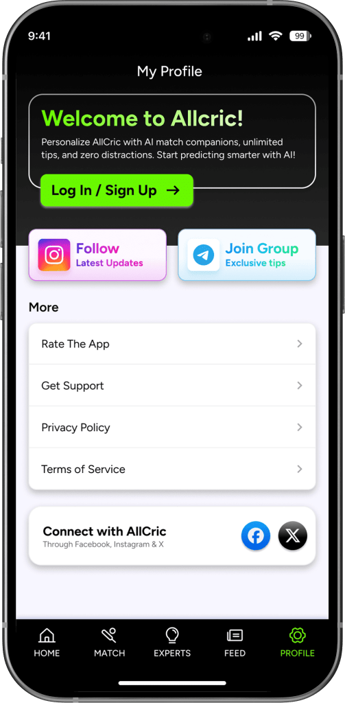 The AllCric app is designed for cricket fans who want more than just live scores. With expert fantasy tips, AI-powered match insights, and real-time analysis, AllCric helps users follow cricket smarter and make better decisions throughout a match.