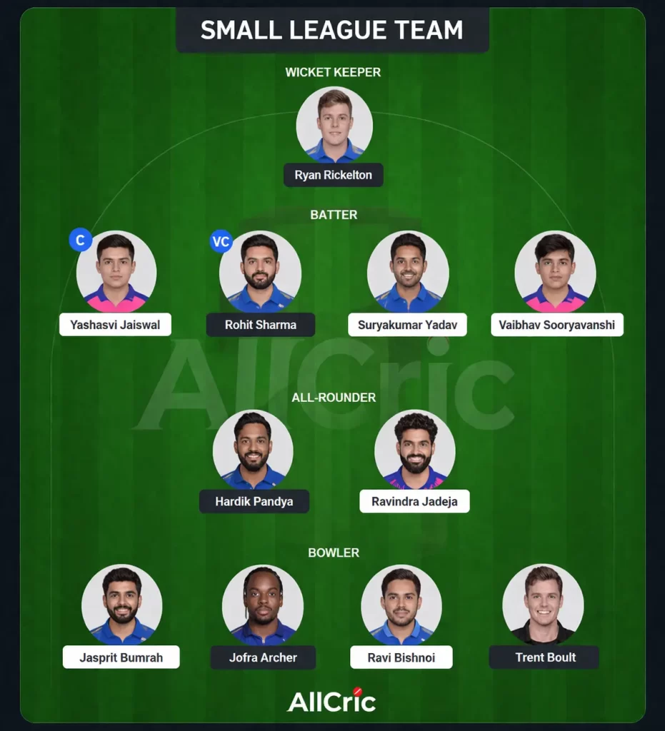 Rajasthan Royals enter this game in superb form with two wins from two, while Mumbai Indians are coming off a defeat and still finding their groove. RR’s batting lineup is firing on all cylinders with Jaiswal, Sooryavanshi and Jurel all delivering big in recent games. Bishnoi and Archer give them a well-rounded bowling attack too.